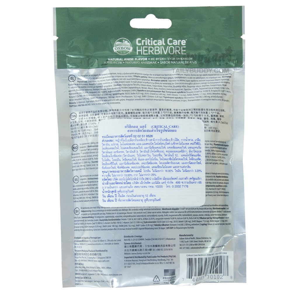 Critical Care® was developed and is recommended because we understand your need for an effective, versatile choice that you can trust for the treatment of your pet. Critical Care is a premium recovery food which can be given to herbivores that are unwilling to eat their normal diet due to illness or surgery. This specially-formulated product contains all the essential nutrients of a complete diet as well as high-fiber timothy hay to ensure proper gut physiology and digestion.
