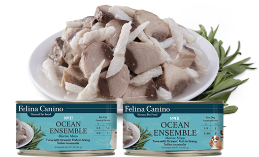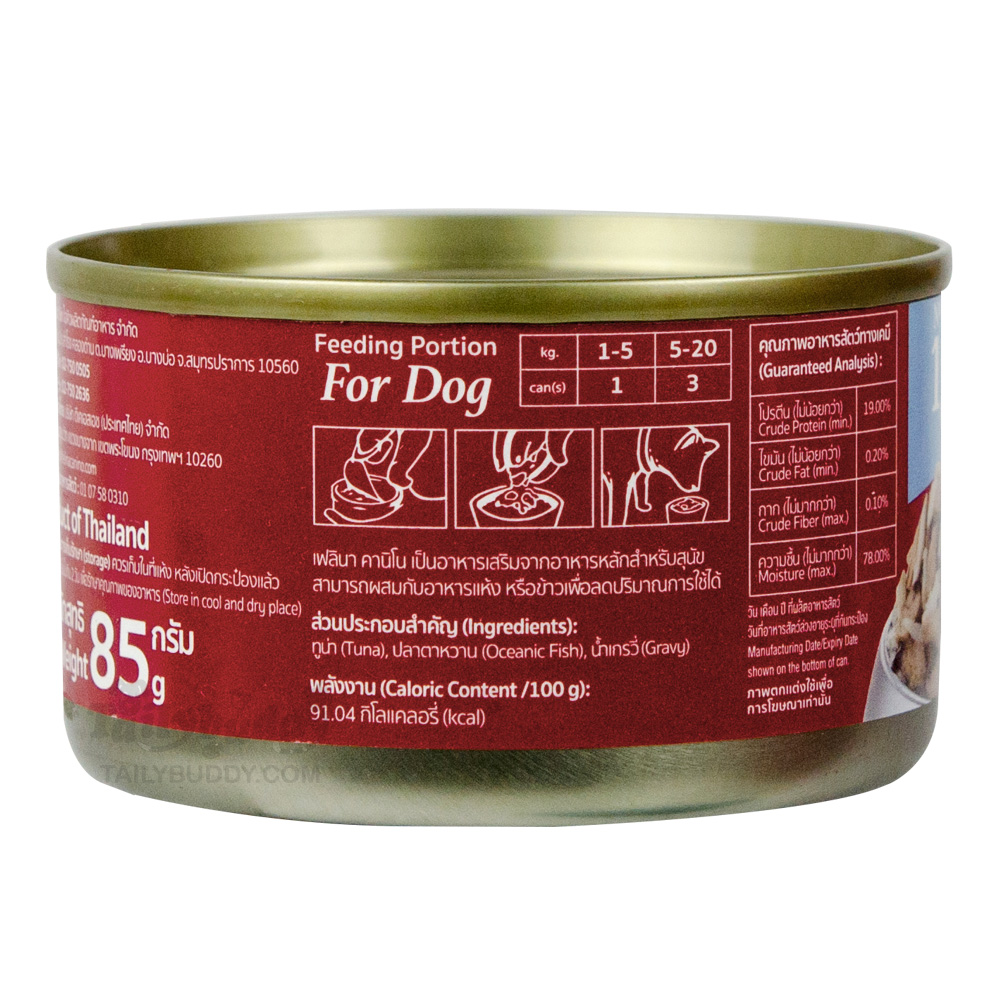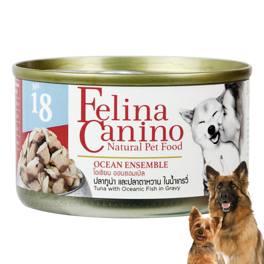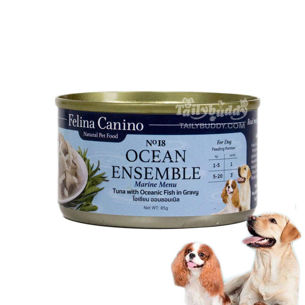 Felina Canino OCEAN ENSEMBLE เฟลิน่า คานิโน่ อาหารเปียกสำหรับสุนัข รส ทูน่า ปลาตาหวานในน้ำเกรวี่ (85g) (NO.18)