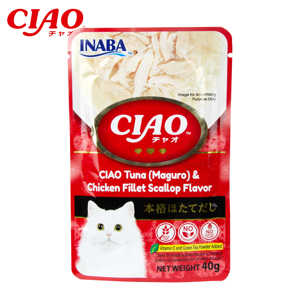 CIAO เชา อาหารเปียกสำหรับแมว แบบซุปข้น รสทูน่ามากุโร่ เนื้อสันในไก่รสหอยเชลล์ (40g) (IC-201)