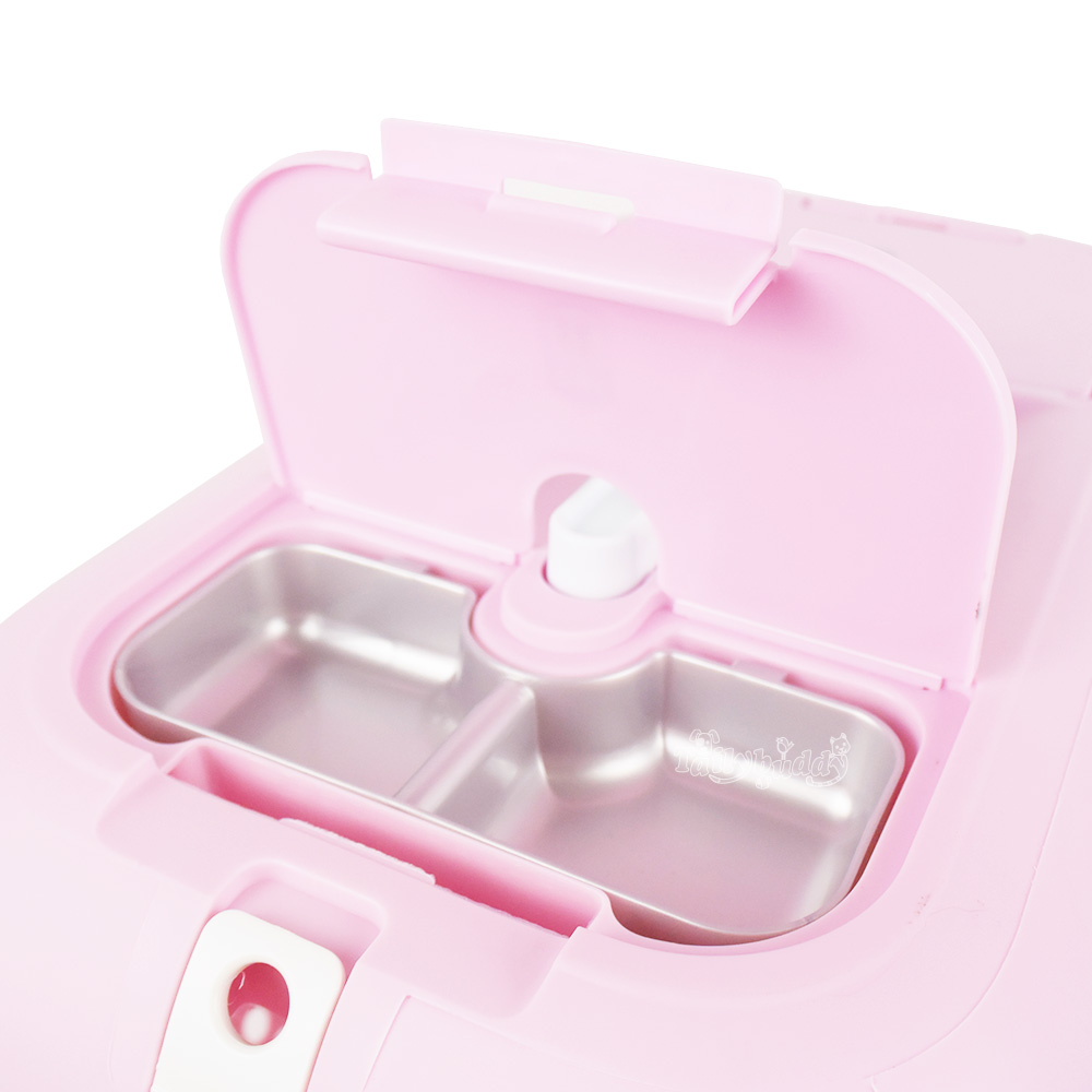 - มีถาดอาหารและถาดน้ำ ที่ด้านบนกล่อง พกพาสะดวก