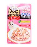 CIAO เพ้าช์ ปลาทูน่าย่างชิ้นย่อยในเยลลี่กับปลาโอสไลซ์และหอยเชลล์สำหรับลูกแมว (50g) (IC-235)
