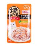 CIAO เพ้าช์ - ปลาทูน่าย่างชิ้นย่อยในเยลลี่กับรสหอยเชลล์และปลาโอสไลซ์ (50g) (IC-231)