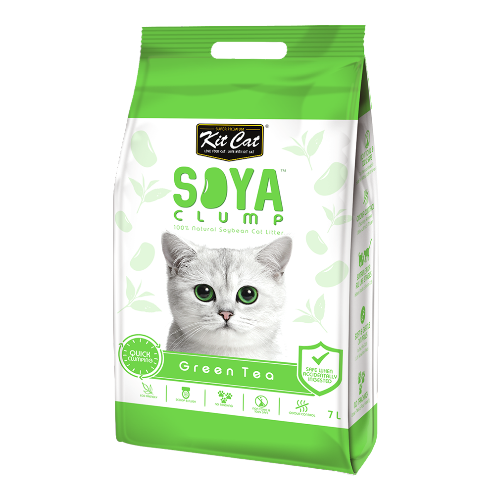 Kit Cat Soya Clump ทรายแมวเต้าหู้ กลิ่น ชาเขียว ธรรมชาติ 100% เก็บกลิ่นไว ไร้ฝุ่น ทิ้งชักโครกได้ (7L.)