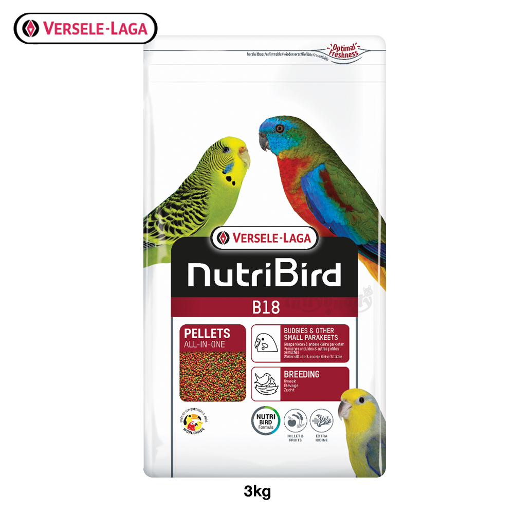 Versele Laga Nutribird B18 is a high protein complete feed that is suitable for budgies & other small parakeets. The higher protein content makes this food a viable option over the breeding & moulting periods, helping birds grow.