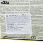 Fresh chicken meat (16 %), chicken meal (13 %), turkey meal (13 %), red lentils, whole green peas, fresh chicken giblets (liver, heart, kidney) (6 %), chicken fat (6 %), fresh eggs (4 %), fresh whole flounder (4 %), herring meal (3 %), herring oil (3 %), sun-cured alfalfa (2 %), green lentils, field beans (2 %), whole yellow peas, pea fibre, fresh chicken cartilage (2 %), dried brown kelp, fresh whole pumpkin, fresh whole butternut squash, fresh whole parsnips, fresh kale, fresh spinach, fresh mustard greens, fresh turnip greens, fresh whole carrots, fresh apples, fresh pears, freeze-dried chicken liver, freeze-dried turkey liver, fresh whole cranberries, fresh whole blueberries, chicory root, turmeric, milk thistle, burdock root, lavender, marshmallow root, rosehips. ADDITIVES (per kg): Technological additives: tocopherol-rich extract of natural origin. Nutritional additives: zinc chelate of amino acids hydrate: 100 mg. Zootechnical additives: Enterococcus faecium NCIMB10415: 600x10^6 CFU.