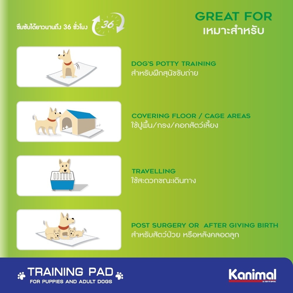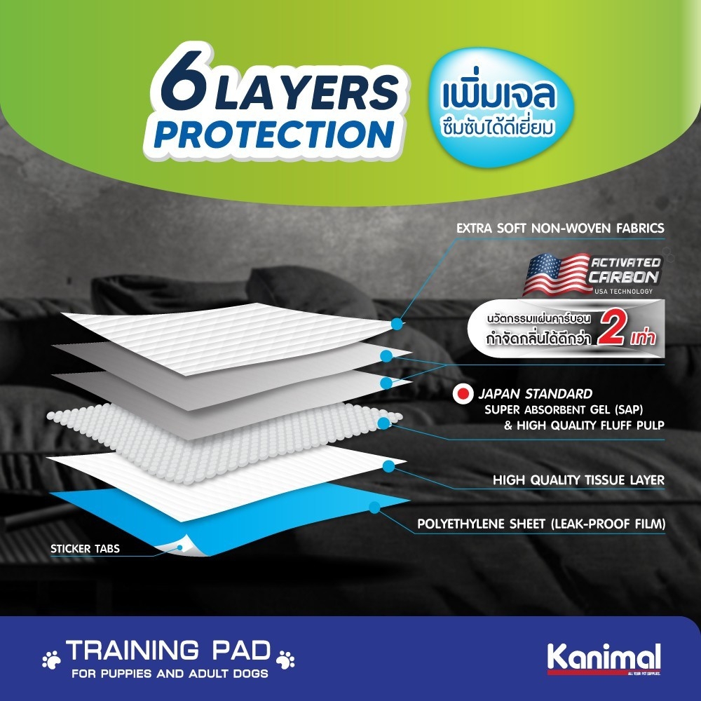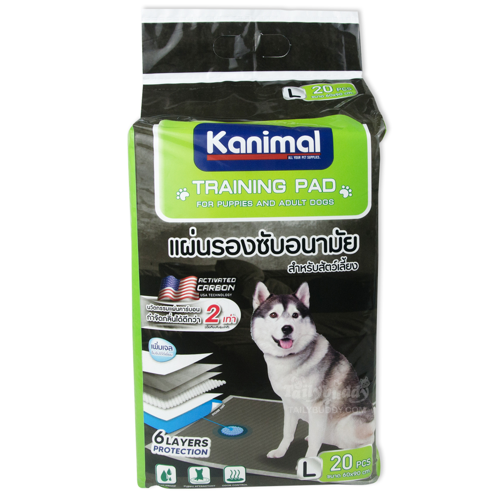 Kanimal, Activated Carbon Dog Pee Pad, 6 layers thick, helps eliminate bad smells. Made from special synthetic paper sheets mixed with carbon that has the ability to absorb bad odors. American standard quality, grid pattern helps prevent tearing from the staving Has a gel which helps absorb the liquid very well. For the cleanliness and hygiene of your dog.