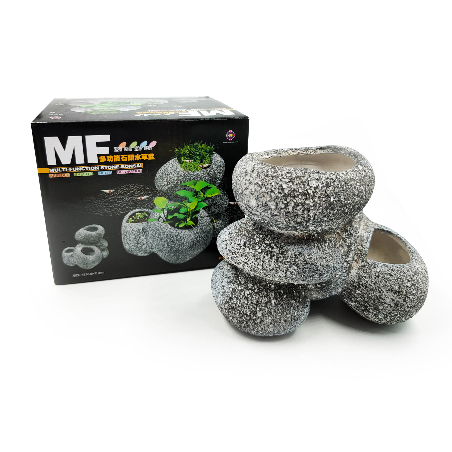 MF Multi-Function Stone-Bonsai หินตกแต่งตู้ปลาทรงกระถางบอนไซ ใช้ปลูกไม้น้ำ หรือ เป็นบ้าน สำหรับสัตว์น้ำ