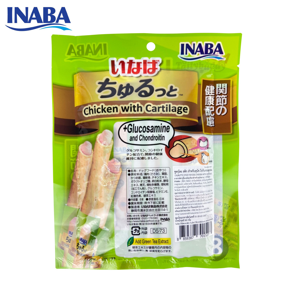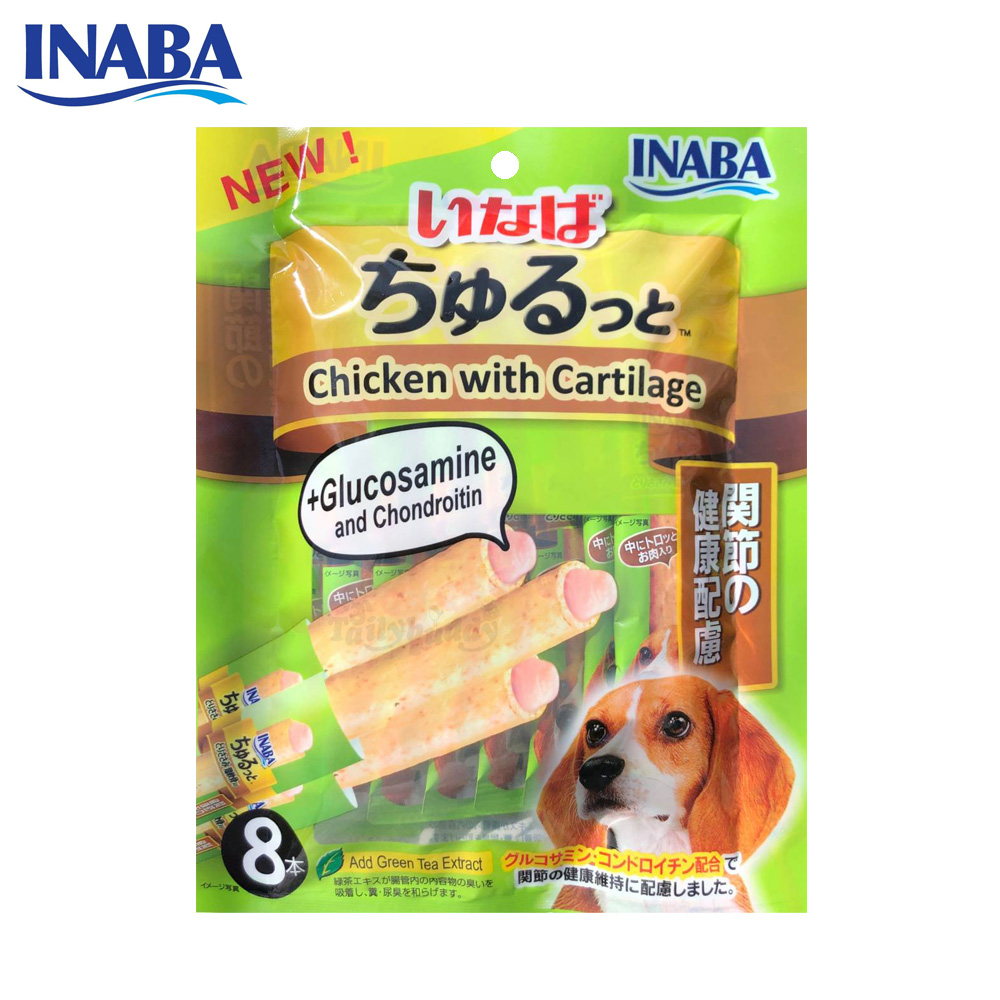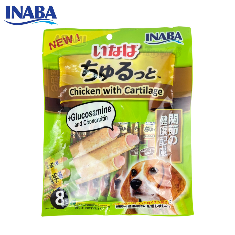 INABA ชูหรุโตะ ขนมสุนัข สติ๊กแท่งสอดไส้ครีมสุนัขเลีย รสไก่กับกระดูกอ่อน ช่วยบำรุงข้อ (8ชิ้น) (DS-73)