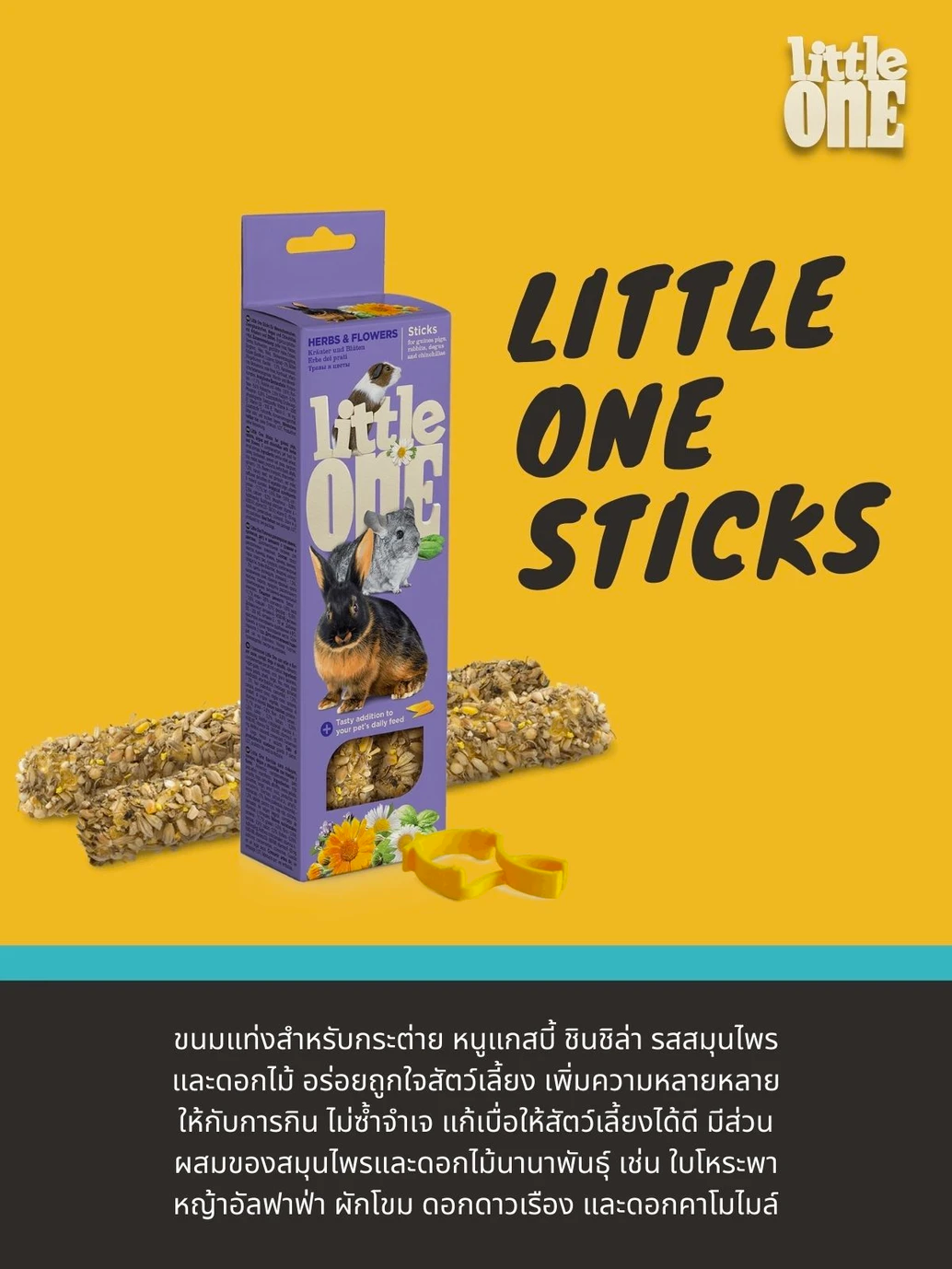 Snack sticks for rabbits, guinea pigs, chinchillas, herbs and flowers flavors. tasty for pets Add variety to food, not monotonous to repeat, solving boredom for pets well Contains a mixture of herbs and flowers such as basil, alfalfa, spinach, marigold and chamomile.