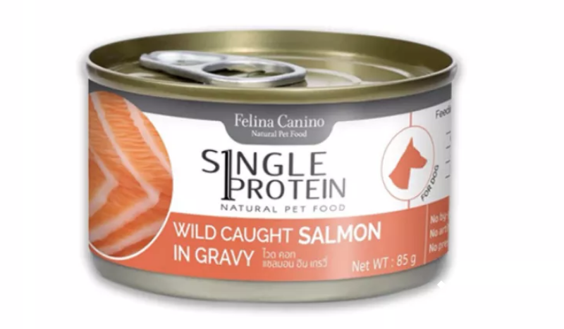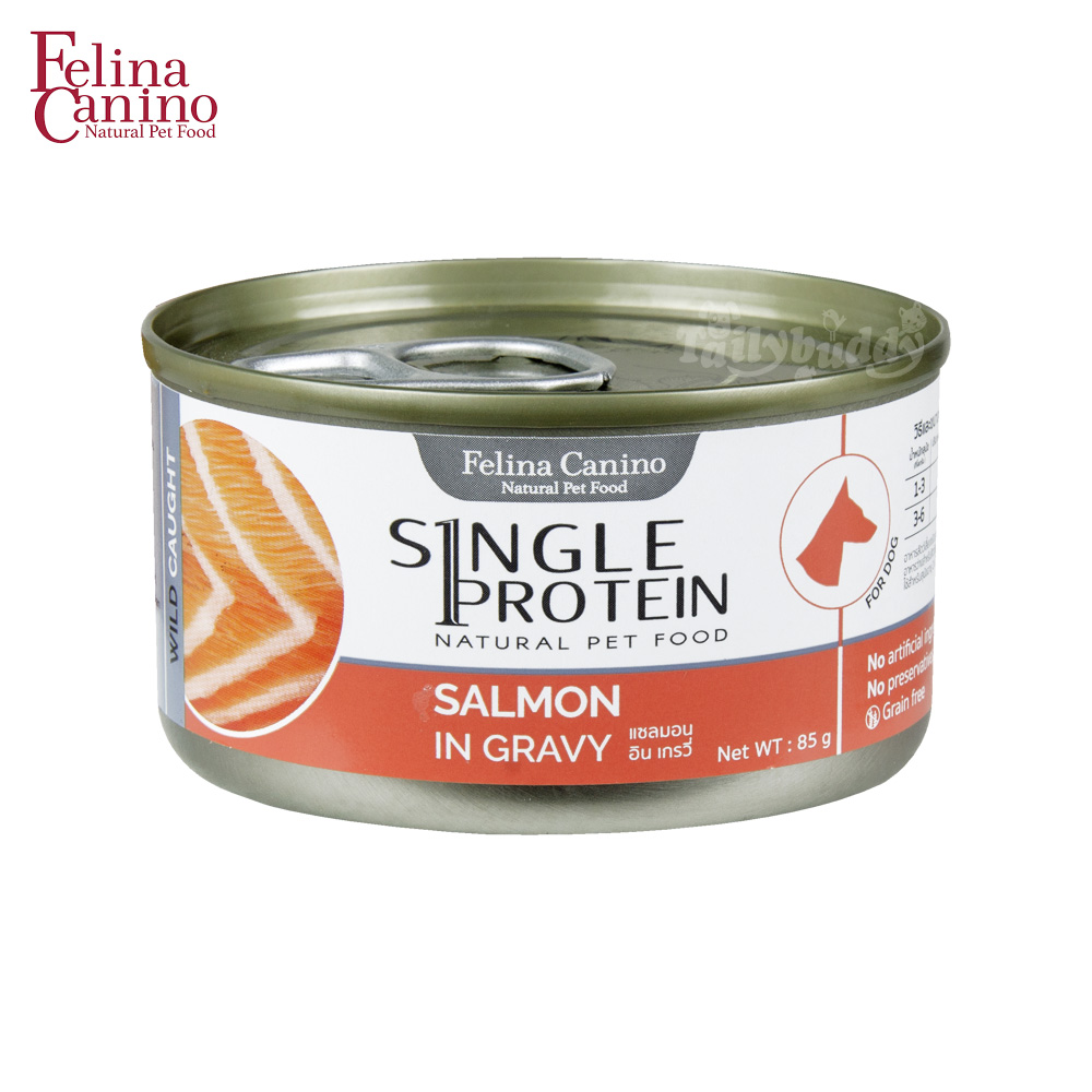 Felina Canino Single Protein (สำหรับสุนัข) : รสปลาแซลมอนจากธรรมชาติในน้ำเกรวี่ (SP.6) 85g