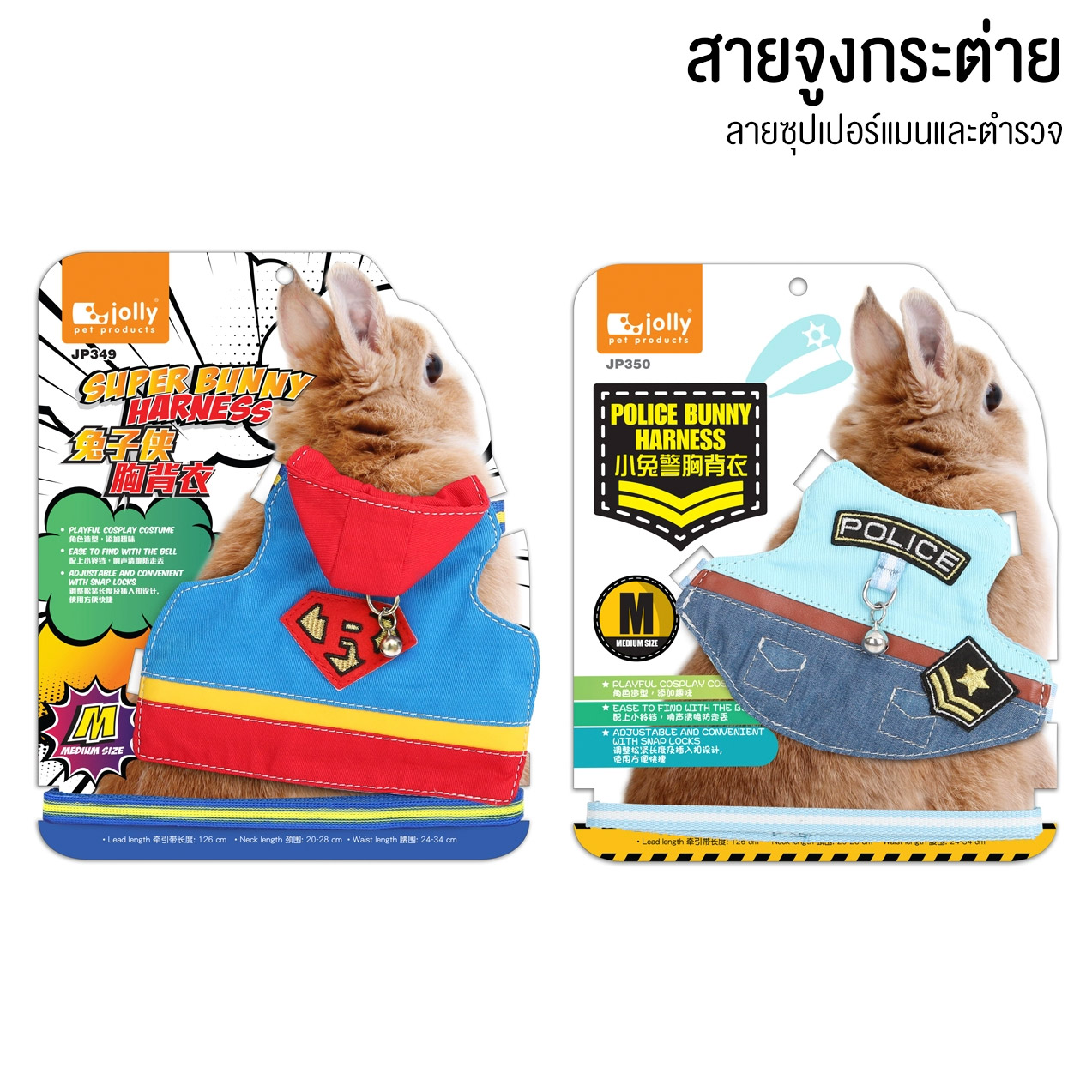 Jolly Super Bunny Harness สายจูงกระต่าย ลายซุปเปอร์แมน และตำรวจ สายทำจากผ้ายางยืด สวมใส่สบาย ออกแบบน่ารัก (JP349/JP350)