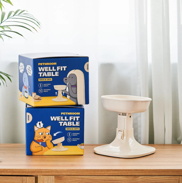 Pethroom Well Fit Table & Bowl ชามพร้อมโต๊ะสำหรับสัตว์เลี้ยง ปรับความสูงและมุมให้พอดีกับสริระได้ เข้าไมโครเวฟได้
