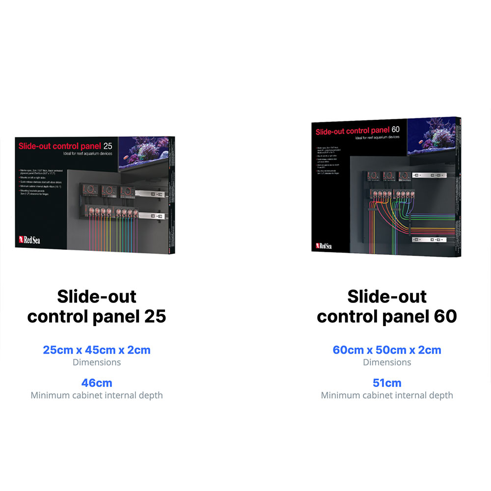 Are you ready to streamline your aquarium organization system? With Red Sea’s new Slide-Out Control Panels, you can have all of your reef monitoring and maintenance devices mounted into one single, easy-to-access location. Affix the panel to either the left or right side of your aquarium cabinet and enjoy easy sliding access to your equipment. Constructed from marine-spec laminated plywood and stainless steel, these Control Panels are perfect for any Red Sea REEFER aquarium setup. Available in two distinct sizes to accommodate a wide variety of REEFER cabinet models.