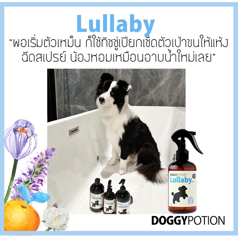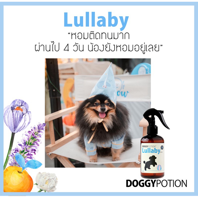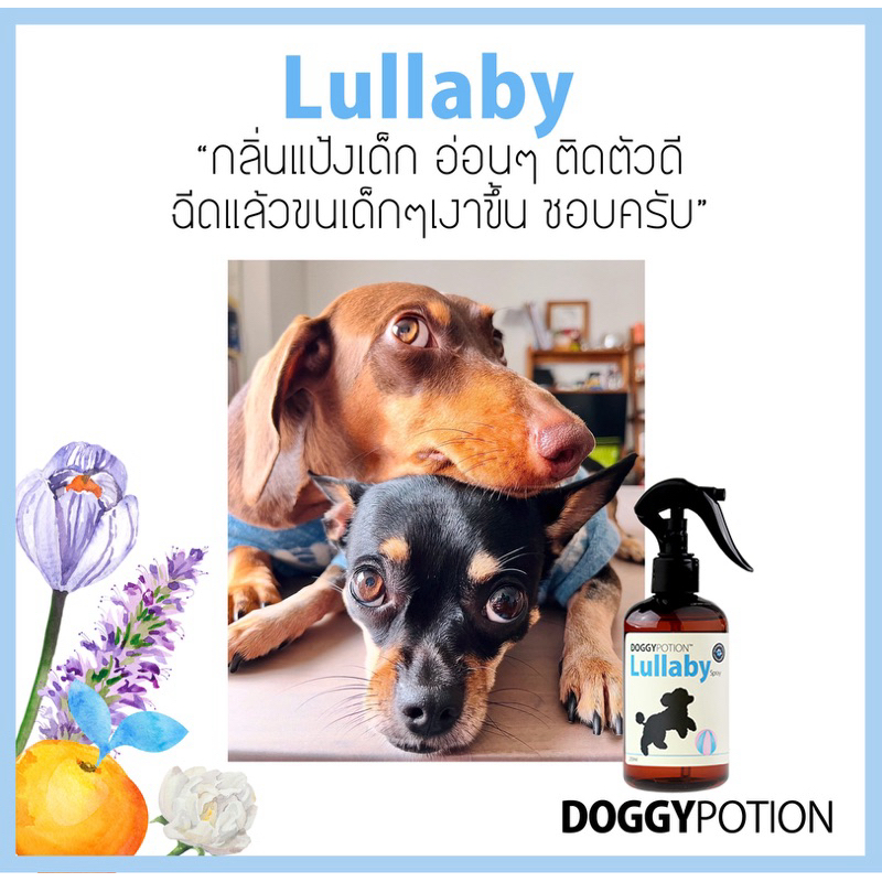 Doggy Potion สเปรย์บำรุงขนสูตร Lullaby ช่วยทำให้ขนสุขภาพดีเงางาม ขนนุ่มขึ้น ลื่นขึ้น แปรงง่าย กลิ่นแป้งเด็ก หอมสะอาด สว่าง สดใส